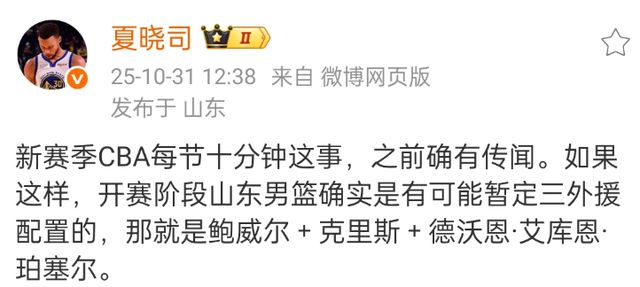山东男篮休赛期挑选外援可以说是雷声大雨点小,说是瞄准了NBA级别的外援,结果克里斯续约,签下了青岛男篮弃用的鲍威尔,最后一个是在欧洲打球的珀塞尔。根据目前的消息,新赛季每节比赛改成了10分钟,山东男篮也决定赛季初期只使用三名外援,这样一来新赛季的外援全部确定。就能力来说,鲍威尔受伤之后状态下滑明显,珀塞尔能力还是未知数,克里斯情绪控制是个问题,对于邱彪来说,新赛季恐怕不是那么容易。