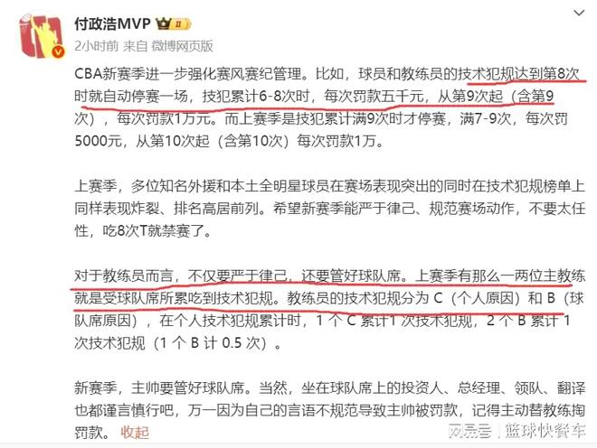 众所周知,篮协和CBA方面,最近几年针对CBA球员和教练员,他们采取的是零容忍的态度,无论是炮轰裁判,还是网络上指责CBA联赛,或者是赛场上一系列不文明行为,篮协方面基本都是采取重罚。可即便篮协和CBA抓得非常严厉,可每个赛季下来,还是有不少CBA球员和教练员顶风作案,这也让CBA联盟非常尴尬。像上赛季季后赛,广东队与山西队在季后赛几乎每场比赛都被处罚,广厦与北京总决赛G5战赛后,也一度引发冲突。很显然,对于CBA上赛季不少球队的做法,篮协和CBA方面还是不大满意。这不,在2025-26新赛季,篮协和CBA方面就重点强调了球员和教练员的赛场作风。为了让球员和教练员更为“谨慎”,篮协方面针对技术犯规处罚和罚款,又增加了力度。新赛季,无论是球员还是教练员,一旦技术犯规达到6次以上,将会被直接罚款,而达到8次者,将会被自动禁赛一场。相比于上赛季,新赛季在针对球员和教练员技术犯规一事上,篮协还是抓得非常严厉的。上赛季,CBA球员和教练员要累计达到7次以上,才会被罚款,技术犯规达到10次以上,才会被重罚。而且,在禁赛方面,上赛季要达到9次以上,才会被禁赛。很显然,篮协和CBA的做法已经非常明显了,他们不希望新赛季会再次出现像上赛季那样的情况,球员和教练员都必须恪守新规。像上赛季的洛夫顿、高诗岩、古德温等人,他们便是技术犯规大户。而在教练员方面,广东队主教练杜锋,和辽宁队主教练杨鸣,他们也是技术犯规大户,过去几个赛季,他们因为不满裁判吹罚,而领到技术犯规的也是常有的事情。另外,由于替补席总经理、助教、领队,他们一旦有情绪的话,裁判如果给替补席技术犯规的话,那么,这一次技术犯规也会累计到主教练头上,这对于主教练而言,确实是非常不利。要知道,以杜锋和杨鸣两人的性格,他们在过去几个赛季,也没少炮轰裁判。不过,由于新赛季对技术犯规抓得更严,这对于杜锋和杨鸣而言,确实是非常不利的。一旦他们被对手激怒,那么,便很容易吃到技术犯规。对于广东队和辽宁队来讲,新赛季他们还真担忧杜锋和杨鸣,一时冲动,给球队带来不必要的麻烦。当然,从篮协和CBA的出发点来看,他们这样做,也是有他们的道理的。