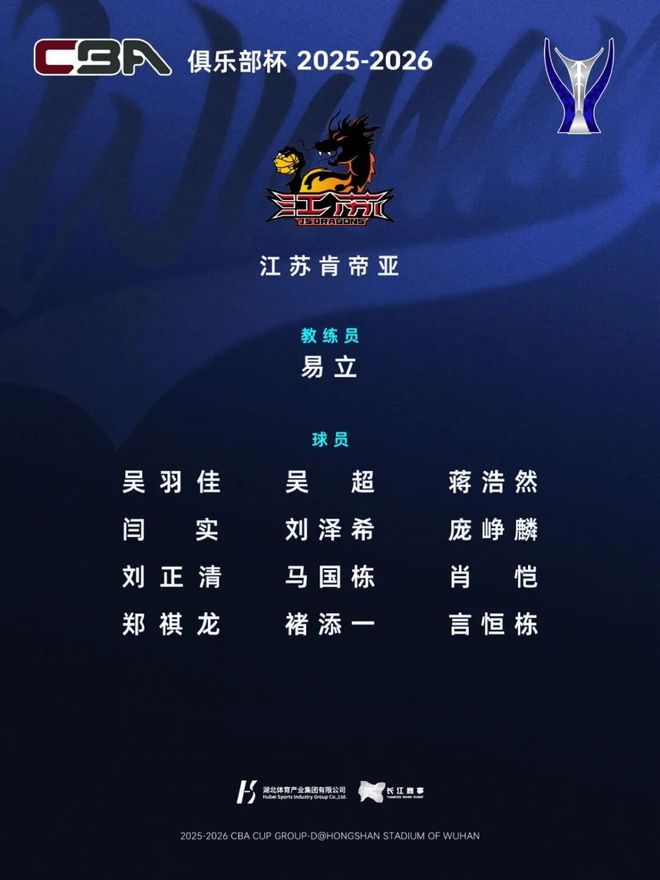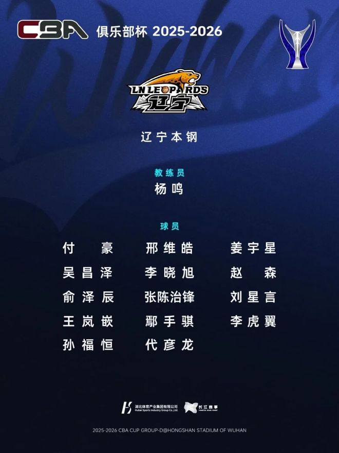 距离 第二届CBA俱乐部杯小组赛开打还有一周, 湖北武汉赛区(D组)名单出炉。广东、辽宁等队均以全华班出战,升上一队的王洪泽、陈家政在列,崔永熙、焦泊乔也将迎来宏远首秀。
