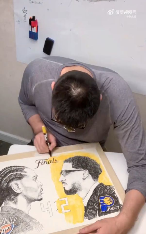 张兆旭在社交媒体同样活跃。此前他曾在微博发布自己手绘的NBA、CBA球星画像视频,画得惟妙惟肖,被网友称为“被篮球耽误的画家”。“我小时候就有画画基础,从小学三年级到初中三年级,每个周末以及寒暑假都在练素描。”张兆旭透露,“退役后空闲时间多了,我就想在社交媒体上展示点不一样的内容,希望让大家看到我的另一面,也算是我传播篮球文化的一种方式吧。”