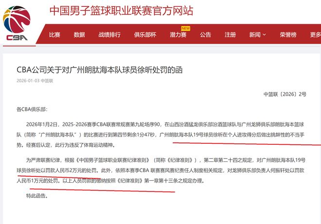 有一点意外!但是,又似乎是很合理,在深夜11点半,CBA公司正式给广州队中锋徐昕,开出了一份大罚单!