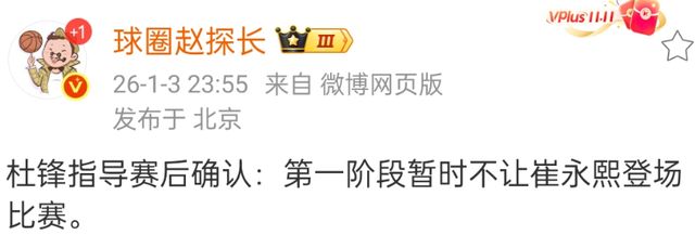 然而在客场和北控男篮比赛之后,杜锋正式回应了崔永熙的情况,他表示崔永熙还在康复中,希望更好的保护他。
