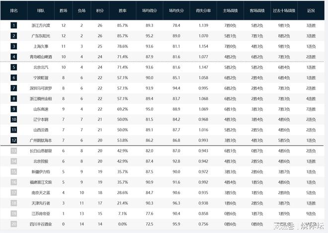 CBA积分榜