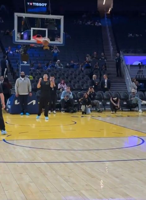 就是准!库里赛前热身时连中logo三分,轻松写意