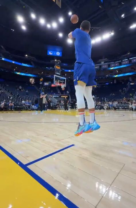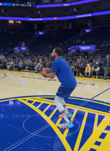 雷速体育10月18日讯 NBA季前赛继续进行,勇士在今天的季前赛收官战中主场迎战快船。NBA官方社交媒体晒出视频,库里在热身时大秀三分投射,连中logo三分。
