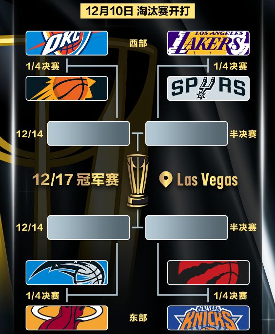 NBA杯八强出炉:湖人vs马刺雷霆vs太阳卫冕冠军出局东部乱斗