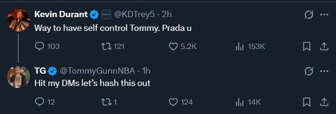 有网友对此次评选感到不满,一网友转发了BR的社媒,并配文写道:“这绝对是有史以来最明显的引战帖了,哈哈。”随后杜兰特回复了这名网友:“你真有自制力,为你骄傲。”这名网友随后回道:“私信我,我们好好聊聊。”