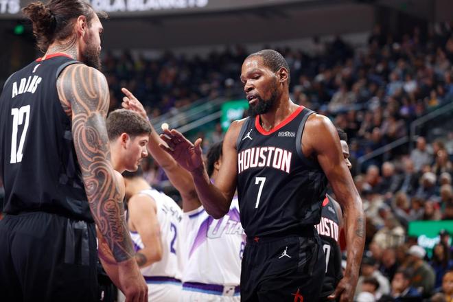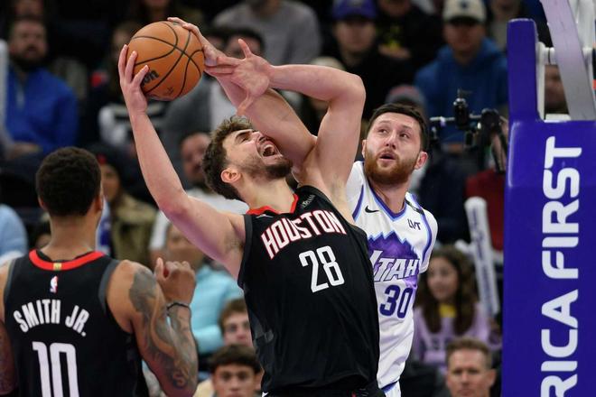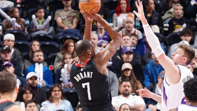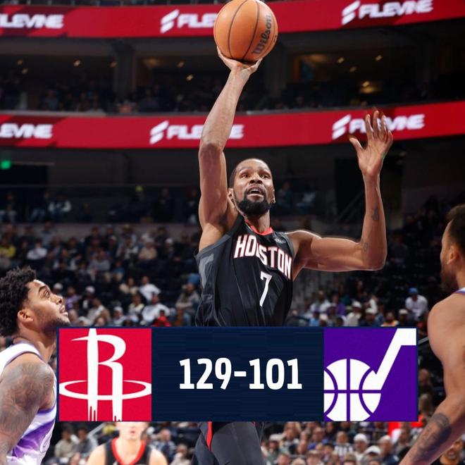 火箭队VS爵士队北京时间12月1日,NBA常规赛继续火热进行。火箭奔赴客场与爵士展开对决,两大宿敌的较量,充满了看点。此役,杜兰特复出并且携手申京、阿门汤普森、小贾巴里史密斯、谢泼德出任首发,奥科吉继续担任替补,芬尼史密斯、范弗利特、伊森伤停。凯斯勒赛季报销,尼昂、乐福缺战,盐湖城的首发五虎是马尔卡宁、努尔基奇、贝利、基昂特乔治与米哈伊柳克。2连胜的休斯顿,志在延续强势表现,并冲击西部前3的排位。马尔卡宁与杜兰特、阿门汤普森领军的锋线群较量,是此役的一大看点。杜兰特25+6创NBA历史第2神迹,还创纪录,火箭3连胜!亚当斯惊艳,申京15中10!全场比赛回顾首节开打,两队展开了对轰之势,分差被没有被拉开。杜兰特携手申京在进攻端发难,盐湖城陷入得分荒,火箭轰出了12比0的攻势,得以取得两位数领先。马尔卡宁率队追分,首节打完,休斯顿以30比21领先。杜兰特跳投次节较量,杜兰特延续火热手感,他连续单打取分,火箭得以不断扩大分差。面对火箭的高压防守,爵士队后场进攻核心小将乔治频繁打铁和失误,休斯顿连续防守反击得手。半场打完,火箭以67比48领先,爵士单节以27比37落后。努尔基奇防守申京易地再战,盐湖城的进攻依旧不见起色,只有零星单打取分。杜兰特、申京、亚当斯携手砍分,火箭连续进攻得手,还轰出了19比0的攻势,将分差扩大至30分以上。李凯尔暴扣为爵士打破得分荒,但是盐湖城在防守端依旧顾此失彼。进入末节之前,火箭以98比68领先,爵士单节以20比31落后。亚当斯在场上持球末节决战,申京连续单打得手,火箭牢牢占据场上主动权。盐湖城追分乏力,只能提前弃子认负。爵士换下首发,两队在场上练兵,时间逐渐走完。最终,火箭以129比101完胜对手,就此斩获3连胜。此役之后,火箭排名升至西部第3。两队数据爵士队,基昂特乔治6中0,三分球1中0得到了0分1板2助。贝利12中8贡献了19分2板1助、马尔卡宁12中5,三分球5中1得到18分8板1助、努尔基奇14分6板9助、菲利波夫斯基12分8板4助、米哈伊柳克11分1板1助、森萨博10分3板2助2断、克莱顿8分2板5助、李凯尔7中3得到了7分3助3断、科利尔2分2板4助。火箭完胜爵士火箭队,小贾巴里史密斯15分2板3助、霍勒迪10中3得到11分1板2助、谢泼德8中4得到9分6板4助4断2帽、奥科吉6中2得到7分5板、泰特7分2板2助、卡佩拉4中3得到6分4板2帽、阿门8中2仅仅得到5分8板9助、格林4分。杜兰特25+6创NBA历史第2神迹,还创纪录火箭队超级巨星凯文杜兰特,在此役实现了暴走。杜兰特出战30分钟,14中10,三分4中3,罚球2中2,狂轰25分6篮板4助攻3抢断1盖帽的全面数据,正负值+28高居全场第二。杜兰特以71%的超高命中率轰下了全场的第二高分,并且他还有着75%的远投命中率。作为全场命中三分球次数最多的球员,杜兰特在防守端的表现也值得称赞。作为此役抢断次数第二多的球员,杜兰特在防守端身先士卒。杜兰特与亚当斯此外,杜兰特在篮板球保护和串联球队方面,也有着稳定的输出。杜兰特展现了全能的身手,他率队早早取得了大比分领先,这是他能够三节打卡的主因。此役,杜兰特还创下了NBA历史第2神迹。数据显示,这是杜兰特生涯第69次单场砍下25+且真实命中率超过80%,与詹姆斯哈登并列历史第二,仅次于斯蒂芬库里(102场)!杜兰特创下神迹此外,杜兰特还创下了纪录。杜兰特命中本场第2球之后,其生涯命中数来到10660个,正式超越了阿历克斯·英格利什,升至NBA历史命中数榜的第11位。杜兰特创纪录亚当斯惊艳火箭队内线大将亚当斯,在此役表现惊艳。亚当斯替补上场17分钟,4中2,罚球10中9,砍下13分12篮板2助攻1抢断1盖帽的两双数据,正负值高达+24高居全场第三。亚当斯轰下了两队替补席的最高分,还是此战的篮板王。同时,亚当斯的4个前场篮板冠绝全场。在亚当斯的积极拼抢之下,火箭篮板数据以50比33碾压对手。前场篮板方面,火箭也以15比9领先。亚当斯单打马尔卡宁亚当斯在低位杀伤力十足,作为此役罚球次数最多的球员,他化身为禁区大杀器,成为火箭完胜对手的功臣。申京15中10火箭队内线巨头申京,在此役表现高效。申京登场28分钟,15中10,罚球9中7,轰下了27分4篮板5助攻1抢断的全能数据,正负值+10。申京以67%的命中率轰下了全场的最高分,作为此役走上罚球线次数第二多的球员,他在进攻端侵略性很强。申京强攻篮下申京的低位单打很有成效,并且他还送出了全场第二多的助攻。兼顾了得分与串联球队的申京,展现了不俗的策应和带队能力。