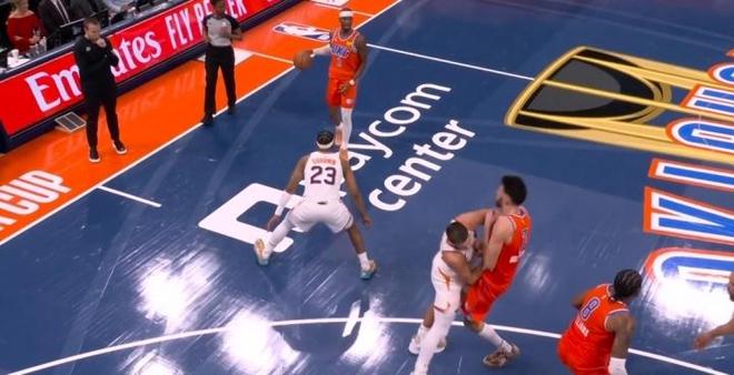 最后惹事的格雷森阿伦头也不回的走回了板凳席,裁判看了半天录像回放,给了格雷森阿伦一个二级恶意犯规,把他驱逐出场!当时明显是太阳被打急眼了,阿伦给了切特一个打脖子的对抗之后,对方在这做掩护,他还双手把对面给推倒在地,属于是上头了,太阳今年的球风本来就很硬,他还这么干,属于带着队友惹事了。