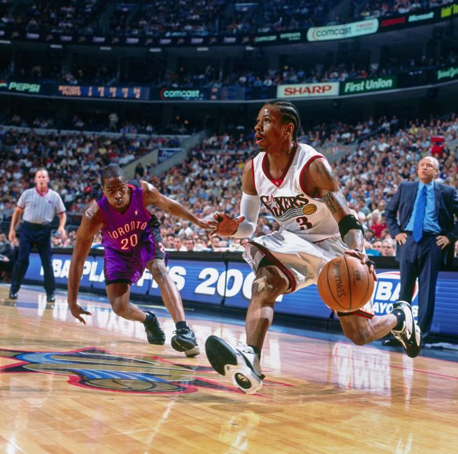 第三位:阿伦·艾弗森——答案的孤胆传奇,一冠便可跻身历史前列作为“四大分卫”之一,阿伦·艾弗森用超强的个人能力和不屈的斗志,成为了无数球迷心中的信仰。1米83的身高,却能在长人如林的NBA赛场打出统治级表现,艾弗森的生涯充满了传奇色彩。他生涯斩获过常规赛MVP,多次获得得分王,凭借犀利的突破和超强的得分能力,成为了联盟中最具威慑力的进攻武器之一。2000-01赛季,艾弗森上演了职业生涯最辉煌的篇章,他单核带领费城76人队闯入总决赛,在总决赛G1中力克不可一世的OK组合,成为了永恒的经典。尽管这一场胜利最终成为了“答案”的绝唱,76人队最终无缘总冠军,但这一轮系列赛足以证明他的领袖能力和个人实力。对于艾弗森而言,唯一的遗憾便是缺少一座总冠军奖杯。以他的影响力和个人成就,若能在生涯中夺得一冠,进入历史前二十的讨论范围将成为无可厚非的事实,彻底完成“封神”蜕变。