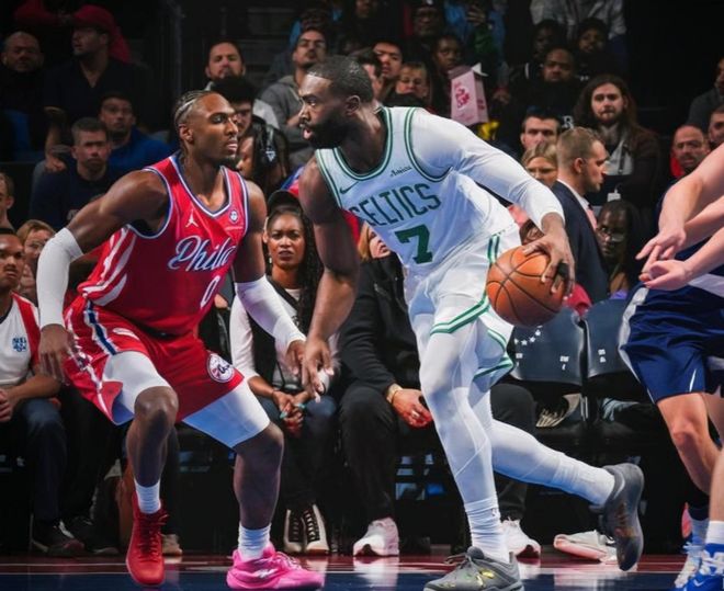 事实上,赛季初期也确实如此,前12场比赛仅5胜7负,战绩一度跌至东部倒数。这跟此前ESPN预测的基本一致,专家对新赛季东部分区的战绩预测显示,骑士和尼克斯被看好领跑东部,魔术和老鹰紧随其后,几乎没有人将失去塔图姆且阵容大变的凯尔特人视为东部竞争者。然而,就在所有人都轻视这支豪门时,一直以来被轻视的球队二当家杰伦-布朗站了出来。赛季至今,杰伦·布朗场均可以轰下29.1分、6.2篮板、4.9助攻,三项数据全部创下生涯新高,此外,他的回合占有率高达35.4%,排名全联盟第三。