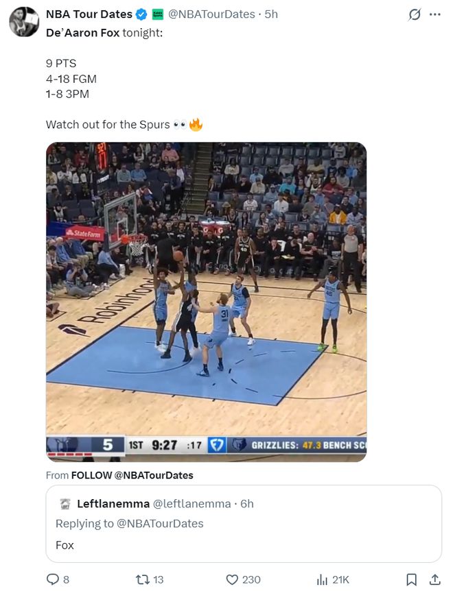 美球迷:福克斯根本不配那份顶薪合同,他总是随意的将自己称之为明星球员,结果带队打不过伤兵满营的灰熊。