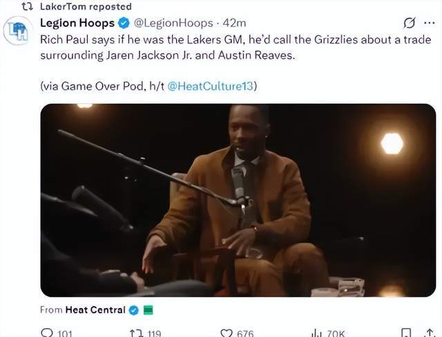 而就在灰熊这条重建消息公开之后,真正第一个抓住热点的,是NBA第一经纪人里奇·保罗;他在个人播客节目里第一时间给出观点: