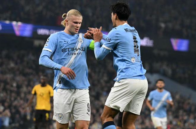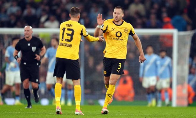 欧冠历史上,两队过往6次对决,曼城取得3胜2平1负的战绩,上一次对阵多特还是2022-23赛季小组赛,当时曼城主场2-1击败多特。两队首发名单如下:曼城首发:25-多纳鲁马、27-努内斯、5-斯通斯、24-格瓦迪奥尔、33-奥赖利、14-尼科-冈萨雷斯、4-赖因德斯、26-萨维尼奥、47-福登、11-多库、9-哈兰德多特蒙德首发:1-科贝尔、3-安东、4-施洛特贝克、5-本塞拜尼、24-斯文松、26-莱尔森、8-恩梅查、20-萨比策、9-吉拉西、14-拜尔、27-阿德耶米开场之后,曼城依靠主场和实力的双重优势,进攻端压着打,多特只能退缩阵型防守,但还是守不住。