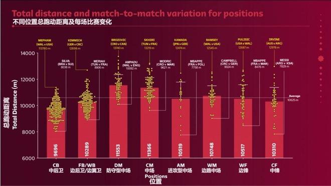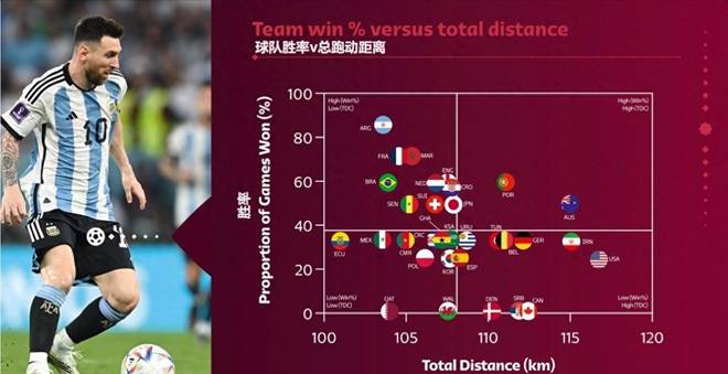 虽然球员们对于世界杯的渴望是毋庸置疑的,不过2022年世界杯的跑动量从数据看还是不如欧冠淘汰赛。比如阿根廷、巴西和法国队的跑动量都不到105公里,相对跑动量更高的葡萄牙、比利时和德国队要么折戟16强,要么直接小组赛出局。不得不说,在世界杯这样的赛会制比赛中,球队磨合时间短,最关键的还是要打造一套合适的战术,找到更合拍的整体性,仅仅只是靠积极性和跑动还是不够的。