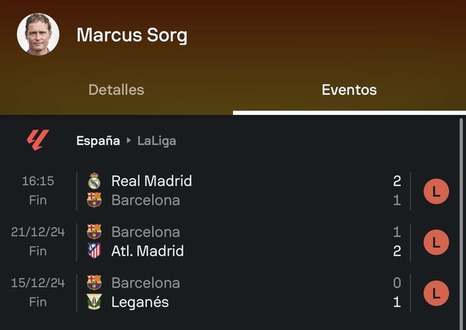 雷速体育10月27日讯 在巴萨1-2不敌皇马后,据数据显示,巴萨助教索尔格临场指挥巴萨的三场比赛全部输球。西甲第10轮的国家德比,皇马坐镇主场2-1击败巴萨,由于巴萨主帅弗里克在对阵赫罗纳时染红,无缘本赛季首场国家德比,巴萨助教索尔格代其在场边进行临场指挥。而索尔格此前两场临场指挥巴萨的比赛也均落败,分别是1-2不敌马竞以及0-1不敌莱加内斯。