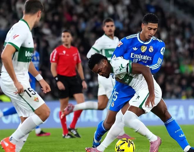 北京时间11月24日,随着皇马2-2战平埃尔切,赫塔费0-1不敌马竞,西甲第13轮的比赛已经结束了9场比赛,我们一起看看最新积分榜变动!西甲最新积分榜皇马近期的状态有些波动,对阵埃尔切的比赛之前,双线均不胜,欧冠0-1利物浦,西甲第12轮0-0巴列卡诺。对阵埃尔切又遭遇了阻击,上半场两队把握机会的能力欠佳,均无建树,互交白卷。第53分钟,埃尔切在皇马的禁区前3人踢出了默契的配合,巴莱拉脚后跟助攻,费瓦斯打破僵局。比分落后的皇马只能通过换人调整,维尼修斯、巴尔韦德等人登场,第80分钟皇马通过角球战术由赫伊森完成破门,双方1-1战平。姆巴佩哑火皇马刚取得进球不久,后防线再次犯错,阿尔瓦罗利用个人能力在大禁区线附近抽射建功。2分钟后皇马还是利用定位球造成混乱,姆巴佩救回了要出底线的皮球,贝林厄姆救主,最终双方2-2握手言和,各拿1分。皇马作为冲击冠军的球队,只拿到1分肯定是不满意的,连续三个客场不胜值得他们好好总结。皇马三场不胜皇马此前战胜了巴萨,一度手握5分的领先,但现在西甲两连平让他们丢掉了4分,目前只有32分,只领先身后的巴萨1分,领先比利亚雷亚尔3分,领先马竞4分,皇马要想稳定榜首的位置,已经没有太多的犯错空间。埃尔切连续6轮不胜,以16分暂列第11名。马竞第4马竞在客场对阵赫塔费踢得非常辛苦,迟迟无法取得进球,直到第82分钟,拉斯帕多里造成多明戈斯-杜阿尔特乌龙球,马竞才以1-0的比分致胜。不管过程如何,重要的是三分,马竞完成了一波5连胜,积分上涨到28分暂列第4名,看到了追赶皇马和巴萨的机会。赫塔费以5胜2平6负积17分暂列第7名。
