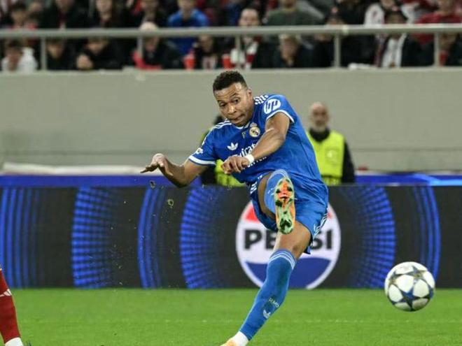 11月27日凌晨,欧冠联赛阶段第5轮,皇马客场挑战奥林匹亚科斯,最终两队上演了进球大战,皇马4-3力克对手,险些爆大冷,艰难拿到了3分,也终结各项赛事的连续3场不胜。皇马是西甲的豪门,同时也是欧冠之王,作为欧冠历史上最成功的球队之一,皇马在本赛季开局阶段踢得还是不错的,但最近这段时间,皇马的战绩不佳,各项赛事遭遇了3场不胜:0-1利物浦、0-0巴列卡诺、2-2埃尔切,联赛层面遭遇了2连平之后,现在领先巴萨的优势也是相当小了,很有可能会被超越。欧冠前四轮,皇马3胜1负排名积分榜第9位、未能处在直通区。奥林匹亚科斯在前四轮的欧冠2平2负未尝胜绩、积2分排名第33位,属于倒数,虽然目前他们在希腊超级联赛排名第1位,但综合实力和皇马还是有着明显的差距。皇马力争要摆脱三场不胜的低迷,而主场作战的奥林匹亚科斯想要爆冷,难度比较大。上半场开场仅仅8分钟,主场作战的奥林匹亚科斯取得领先,波登斯分球,奇奎尼奥和卡埃比打出了一个撞墙的配合,奇奎尼奥右脚抽射破门,1-0皇马,这个开局有些没有想到。第16分钟,阿诺德角球直接攻门被门将轻松没收。而从第22分钟开始到第29分钟,姆巴佩突然大爆发,短短7分钟上演了帽子戏法的好戏,先是维尼修斯助攻姆巴佩推射入网、接着居莱尔助攻姆巴佩头球破门、卡马文加挑传+姆巴佩单刀推射又进球,皇马几乎是瞬间3-1反超了奥林匹亚科斯。