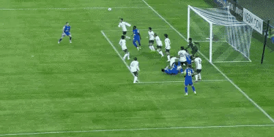第15分钟,阿苏埃衔枚疾进,杀入禁区后起脚怒射,皮球被权田修一扑了一下后,打中横梁飞出。