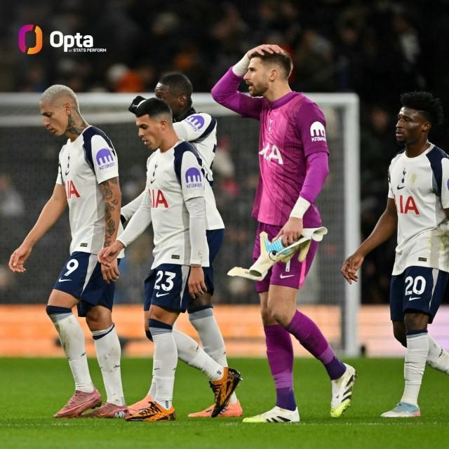 英超场均射门9.5次,射正3.2次,均为2003-04赛季以来单季最低纪录。2025年,热刺已吞下10场