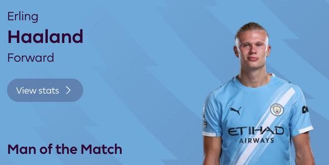 最终经过英超官网球迷评选,哈兰德以76%的得票率当选全场最佳球员。