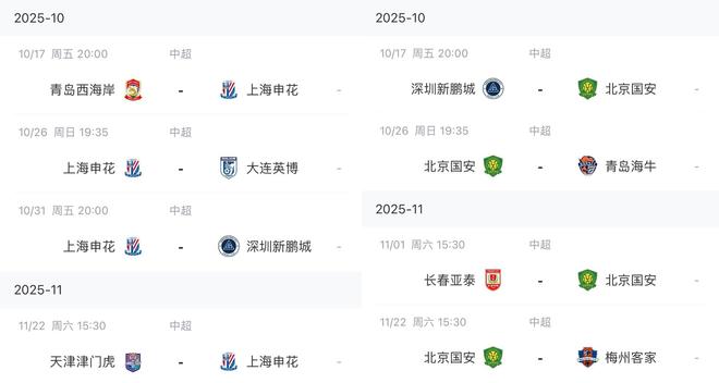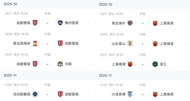 对比中超最后4轮赛程!才发现海港最难国安强势反弹申花最优