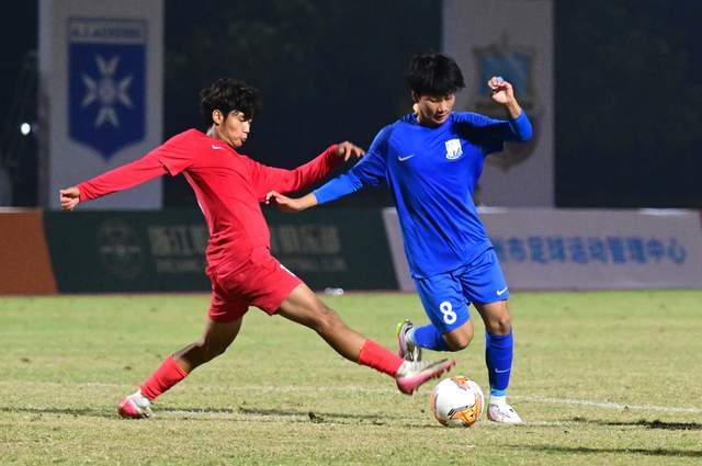 本届钱潮杯,上海申花U14揭幕战的表现就令人侧目,面对来自法甲豪门里昂的U14梯队,他们收获了一场7:0的大胜。第二场4:1大胜乌兹别克斯坦缔造者U14,第三场2:0完胜浙江U14,提前锁定A组第一,闯进决赛。钱潮杯冠军争夺战,在上海申花U14和大区青训中心(苏州基地)U14之间上演,“江浙沪德比”。比赛一开场,双方就展开了激烈的争夺。第3分钟,上海申花U14利用角球机会得分,9号中锋陈伟杰的进球帮助球队1:0领先大区青训中心U14。开场不久丢球,大区青训中心U14并没有慌乱,很快抓住对手后防失误扳平比分。