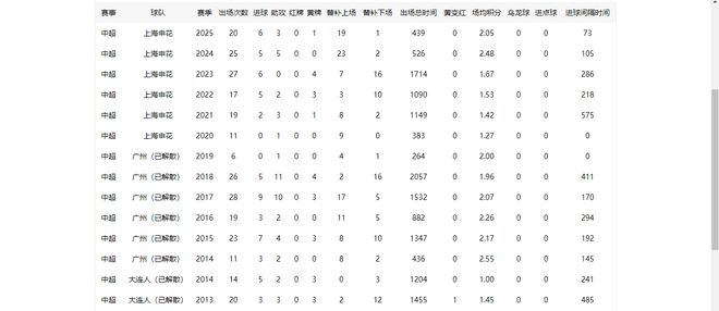 自2014年登陆中超后,他已在联赛活跃12个赛季,生涯最高转会费高达905万欧,期间效力过河南队、已解散的河北华夏幸福以及梅州客家。